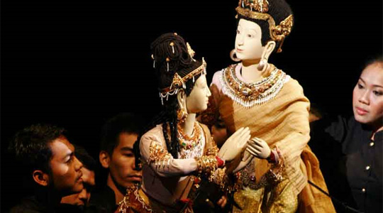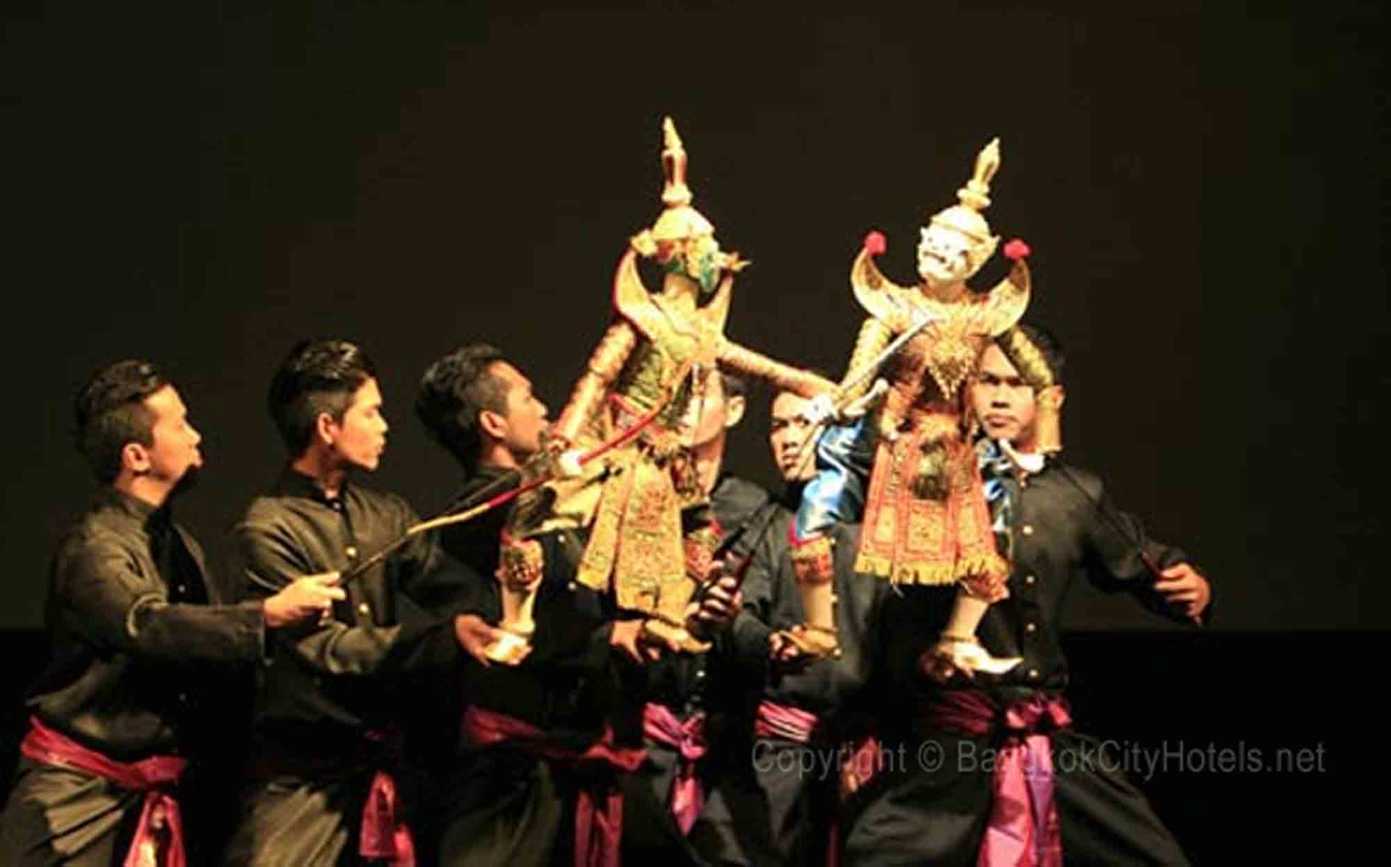In Thai puppetry, each puppet requires the synchronised efforts of three puppeteers all of whom appear on stage with the puppet and all of whom are accomplished Thai classical dancers in their own right.