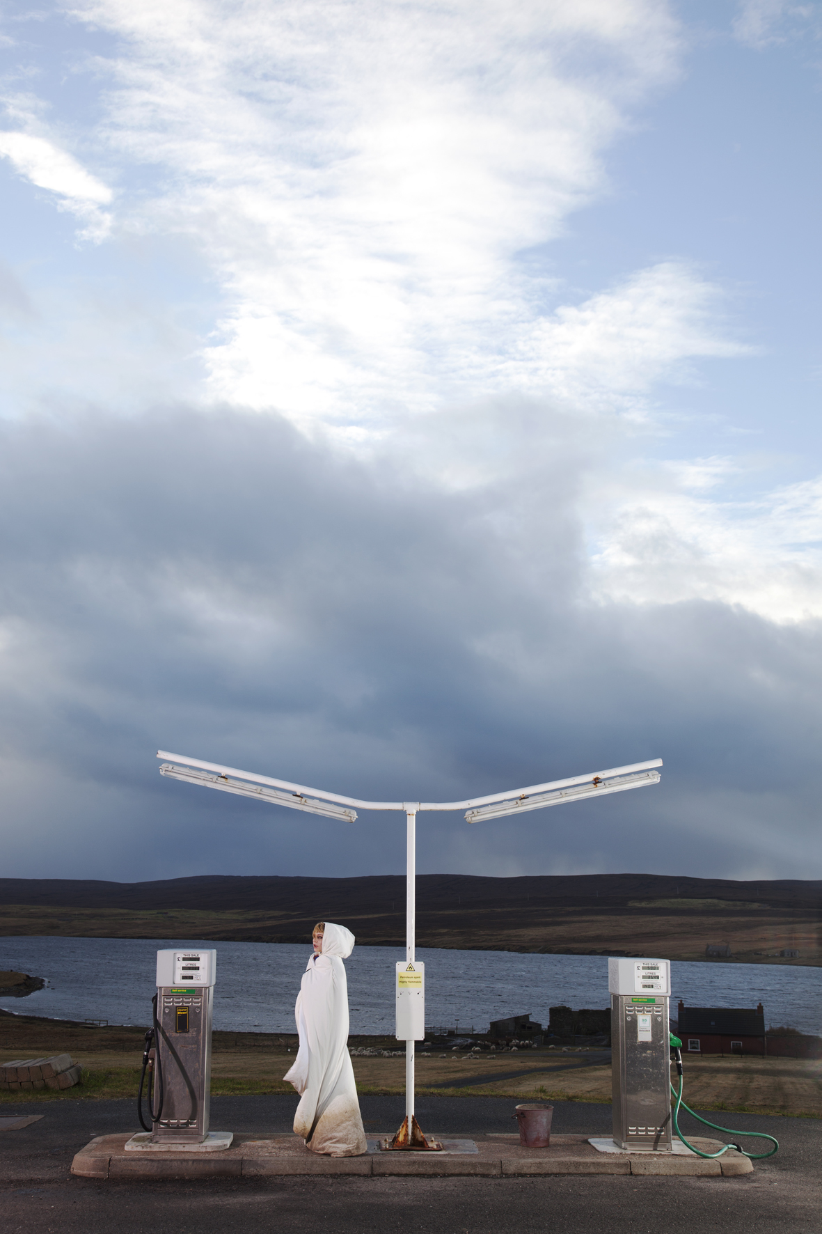 The piece is called Ignition and is set and takes place in the Shetland Islands in Scotland.The idea for Ignition grew from the death in a car crash of a young man called Stuart Henderson. It slowly developed into a project exploring the Shetlanders’ relationship with oil and the combustion engine. It has resulted in this joint creation, developed over the past over six months, by National Theatre of Scotland and Shetland Arts with members of the Shetland community. What makes it extraordinary is the way hundreds of individual stories (many gathered by Lowri Evans, dressed as the “White Wife” of folklore) meld into experience that everyone can recognise, identify with and participate in – rather in the way that you sometime see one big image made up of thousands of tiny photographs (selection and combination by dramaturg Rob Evans). But, because you are part of the event, you are also making your own picture as you go along. The fire that lights Ignition is, it turns out, the seemingly simple blending of other people’s lives into our own and opening both into something universal.