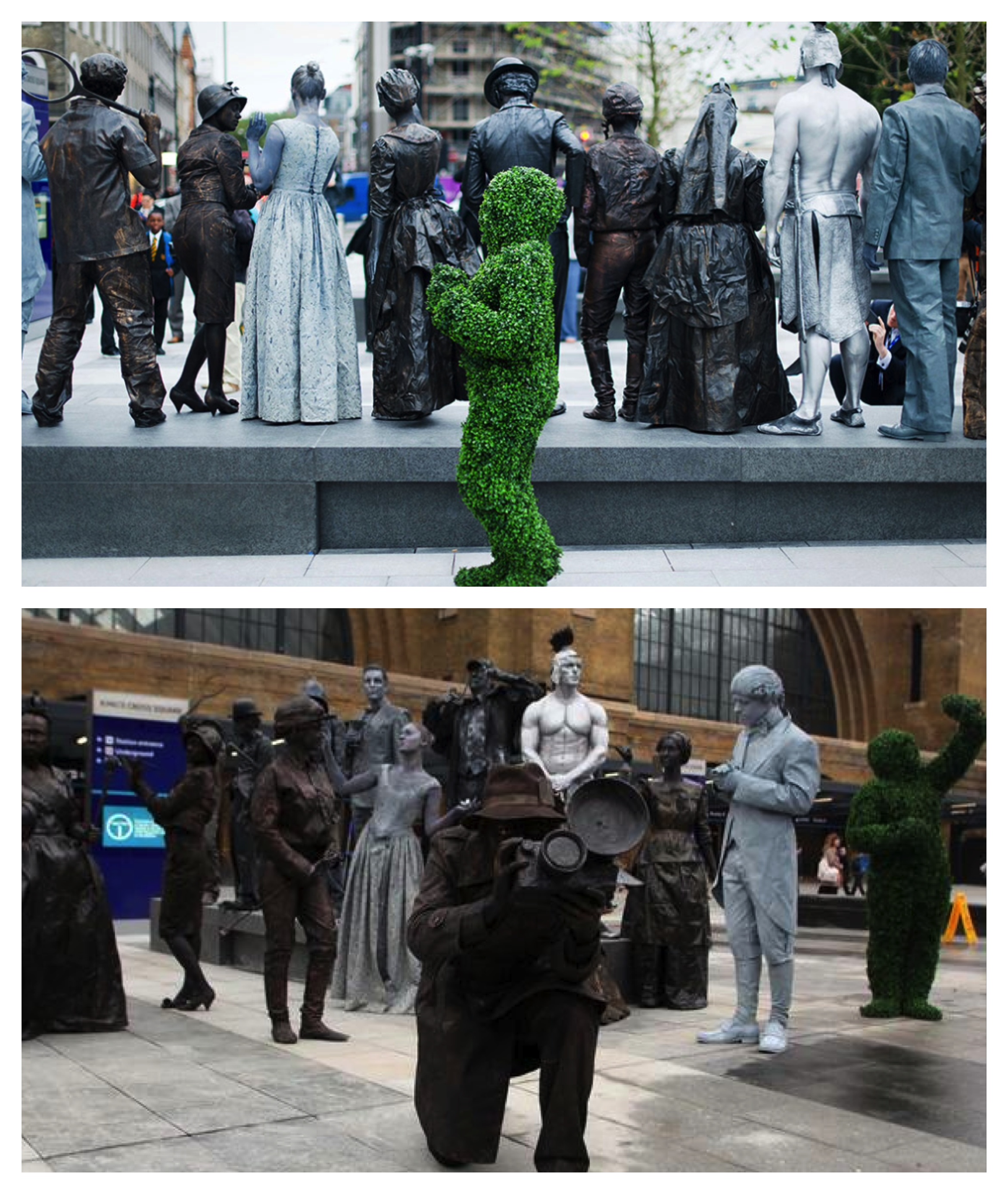 My point I hear you ask? Well, Saatchi, the PR company behind the opening of the new Kings Cross Square (Kings Cross Station of Harry Potter fame) decided that this would be a good way of celebrating the ‘public art’ aspect of the new space. Really, really? Is that all they could think of? In a city that prides itself on the quality of its culture and artistic credentials, this is all they could do? You might have gathered I am no fan of these silver people who seem to inhabit cities across the globe. In fact I have voiced this here before in my post Hands Up and if I had been confronted by all these ‘statues’ on my daily commute to work I would have surely been arrested for physical abuse. They are a distraction, nothing more. There is no skill involved here!
