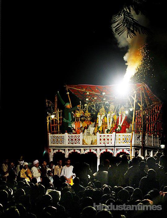 One site specific performance that is almost 200 years old is the Ramlila of Ramnagar performed in Varanasi, India every year. It was started in 1830 by the Maharaja Udit Narayan Singh and is a theatrical portrayal of the Hindu epic, the Ramayana. Ramlila or Ram Leela (which means, literally, Rama’s story) take place all over India, but the one in Ramnagar is an epic in its own right. It lasts 31 days and takes place over an area of almost 8 square kilometres – basically the city is turned into an open-air set. It is steeped in tradition – characters are played by local actors and major roles are often inherited by families, a good example being, the role of Ravana which was held by same family from 1835 to 1990. It is reckoned that over 1 million people come to watch the spectacle every year. What interested and heartened me was that the ‘audience’ are indeed pilgrims. Very few foreign visitors are amongst the spectators as Ramnagar currently has no real tourist infrastructure. It wasn’t until 2013 that it was officially allowed to be documented on film.