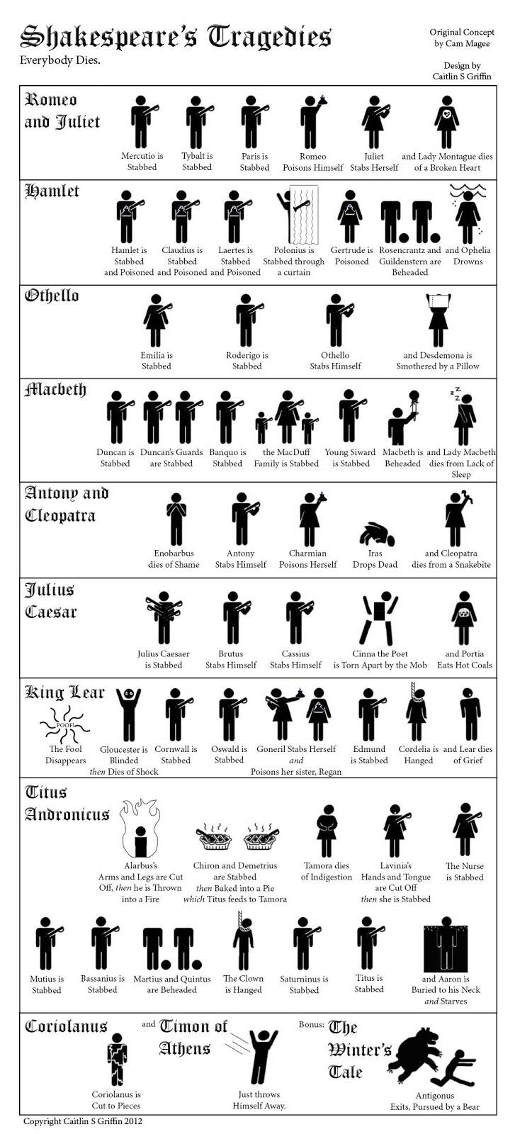 When I was a child, we had something called ‘wall charts’ that normally came free with weekend newspapers, and that covered every topic imaginable. Today’s version of these are ‘info graphics’ and very often still created by the now online print media. Today I have two infographics to share, the first of which has been doing the rounds on social media for a while, but worth a look if you haven’t seen it.A great little aide memoir to all things death in Shakespearian tragedy. Following on from my last post, I’m guessing Kin Jong-Un hasn’t seen it.